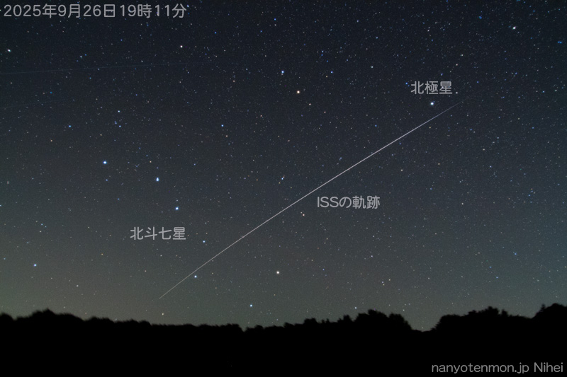 - 二瓶会員です。「国際宇宙ステーション(ISS)が北北西の空に見られました。搭乗している油井宇宙飛行士に手を振って見送りました。」