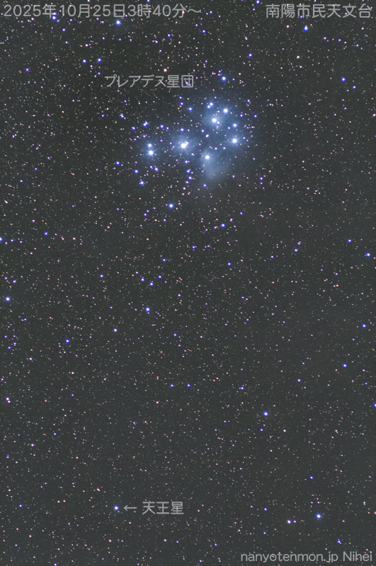 - 二瓶会員です。「天王星がおうし座のプレアデス星団の近くに位置しています。プレアデス星団は和名・すばるで知られる明るくて大きな散開星団です。」